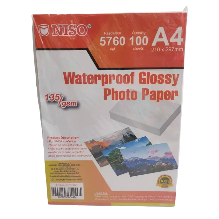 Niso Waterproof A4 High Quality Inkjet Glossy Photo Paper 135 Gsm (100sheets/Packs) Shopee
